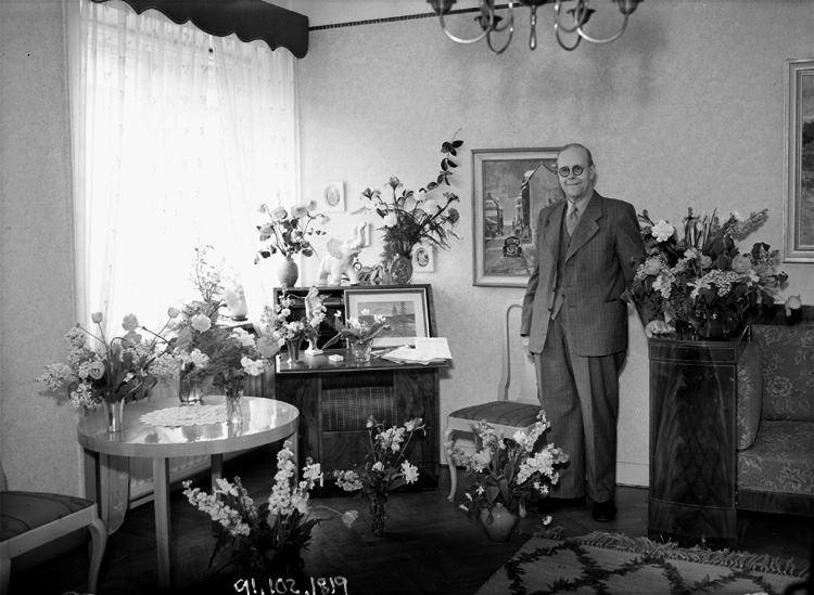 Rumsinteriör, en äldre man, födelsedag.
