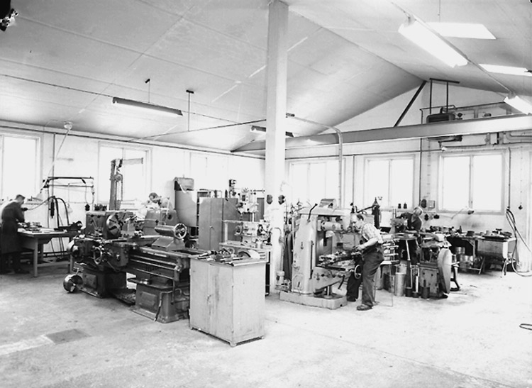 Stellana Laxå, verkstadsinteriör med arbetare.