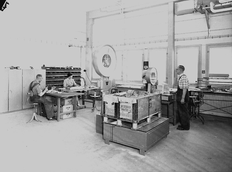 Stellana Laxå, verkstadsinteriör med arbetare.
