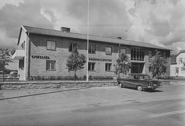 Titel: Vretstorp, Kommunalhuset (Sjukkassa och Kommunalkontor). Bilden tagen för vykort. Förlag: Svennes Pappershandel, Vretstorp.