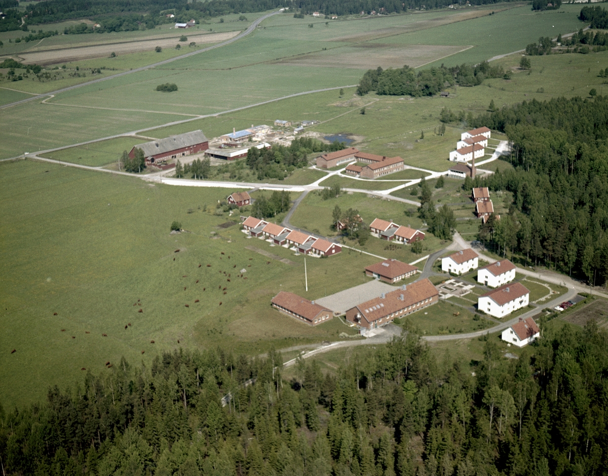 Flygfoto över Kvinnersta lantbruks-, lanthushålls- och skogsbruksskola, Hovsta.