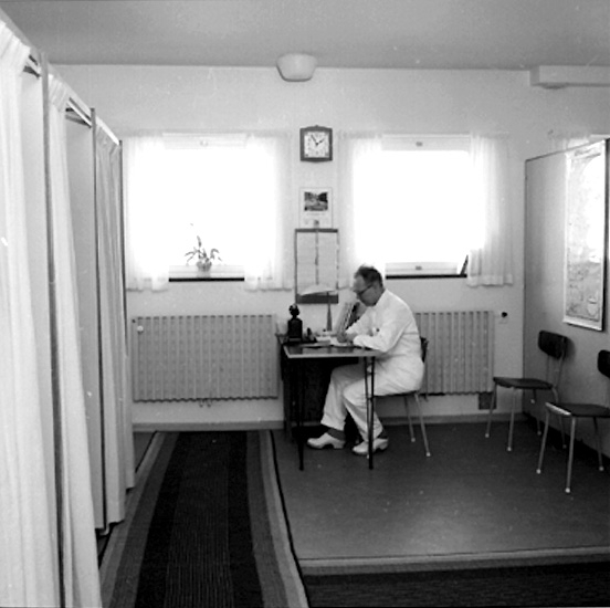 Nyhyttans kuranstalt, interiör, en läkare vid bordet.