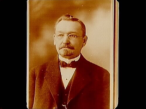 Titel: En man, bröstbild. Vasakyrkan, Örebro Brödraförsamlings 6:e predikant, E.F. Holmstrand, 1904-1917.