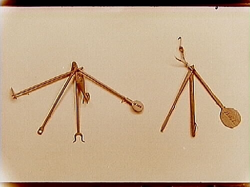15080 = Smörjhorn, spade, raka och gaffel snidade i trä.