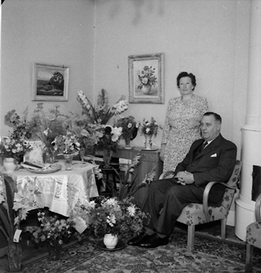 Titel: Rumsinteriör, ett par. Fru Johanssons födelsedag.