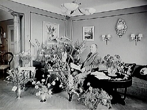 Titel: Lagerchef Gustaf Höckerbos 50 årsdag. Rumsinteriör, en man.