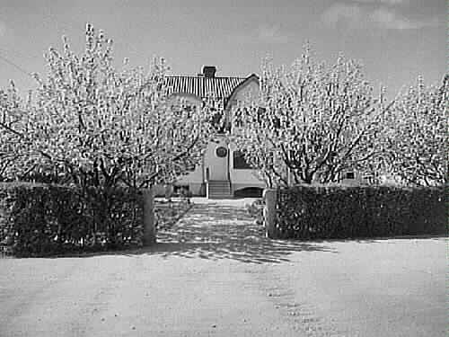 Envåningsvilla med inredd vind, brutet tak, frontespis, takhuv, burspråk.