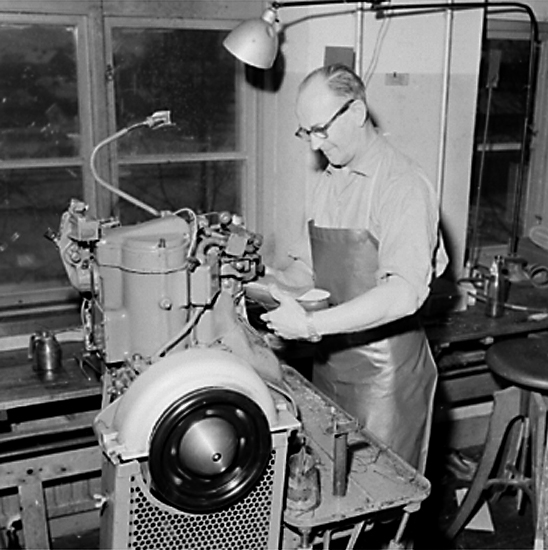 Oscaria Skofabrik, interiör, skotillverkning, en man.