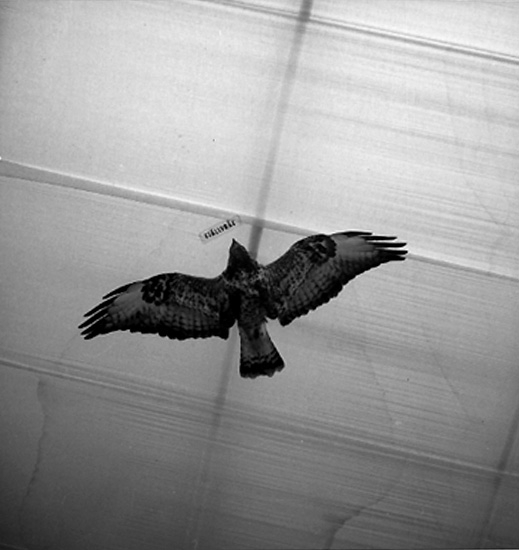 Gävleutställningen, interiör, en uppstoppad fågel (fjällvråk).