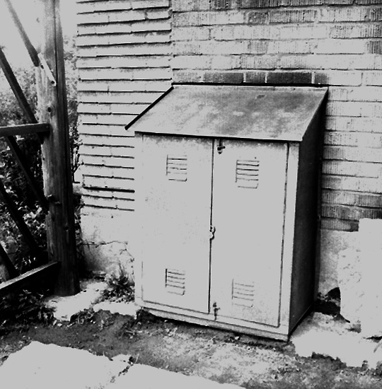 Titel: Kvarntorps Gasol, byggnaden, skåp för gasolflaskor. Skifferolje AB.
