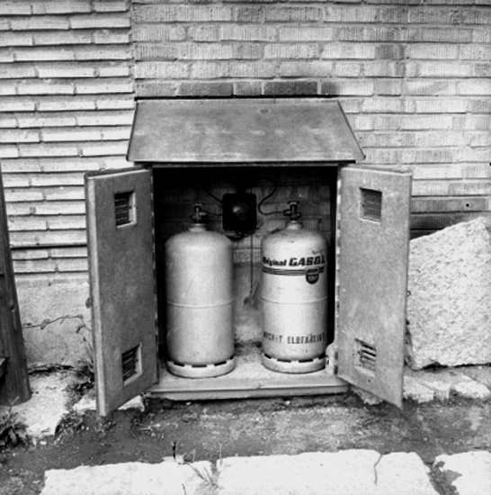 Kvarntorps Gasol, byggnaden, skåp med gasolflaskor.