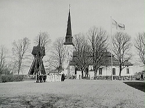 Pastor Persson med konfirmander på väg till Glanshammars kyrkan.