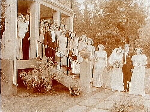 Lägenhetsägare Vallentin Pettersson, dotterns bröllop, brudpar och bröllopsgäster.