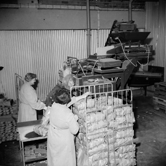 Interiör, förpackning av potatis, två kvinnor.