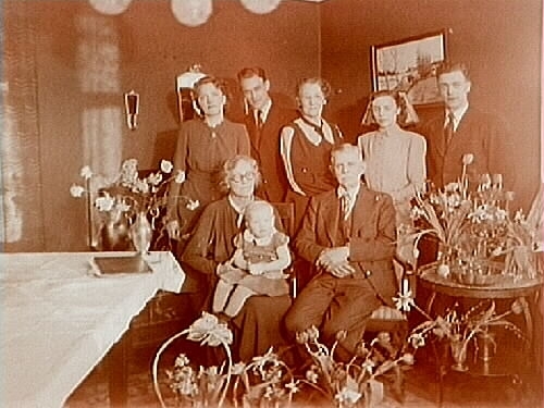 Rumsinteriör, släktgrupp åtta personer.
