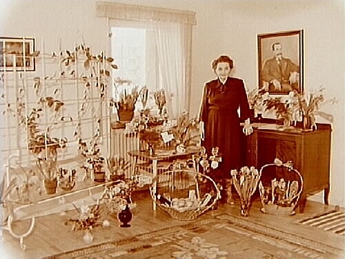 Rumsinteriör, en kvinna, högtid.