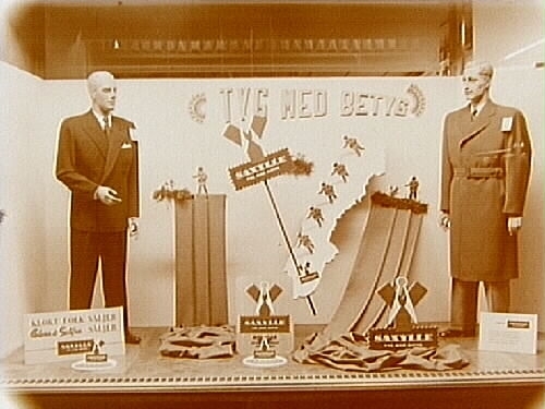 Andersson & Gustafssons skyltfönster, herrkläder av saxylle.