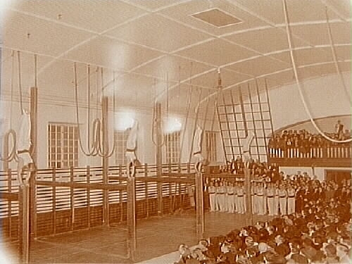 Arbetarnas gymnastikförening (AGF), 4 personer, gymnastikuppvisning.
