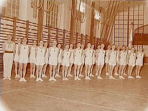 Arbetarnas gymnastikförening (AGF), 4 personer, gymnastikuppvisning.