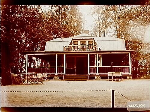 En och en halvvånings bostadshus med stor veranda och balkong, kaffe och konditorirörelse på Stora Holmen.