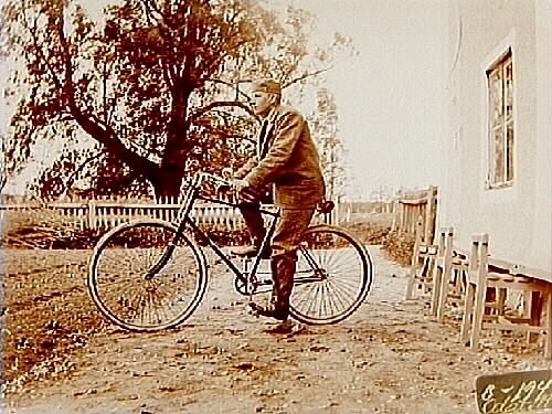 Titel: En okänd man på cykel. Bilden tagen i slutet av 1800-talet.