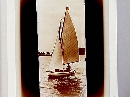 Litten ruffad segelbåt på Hjälmaren, en man i båten.