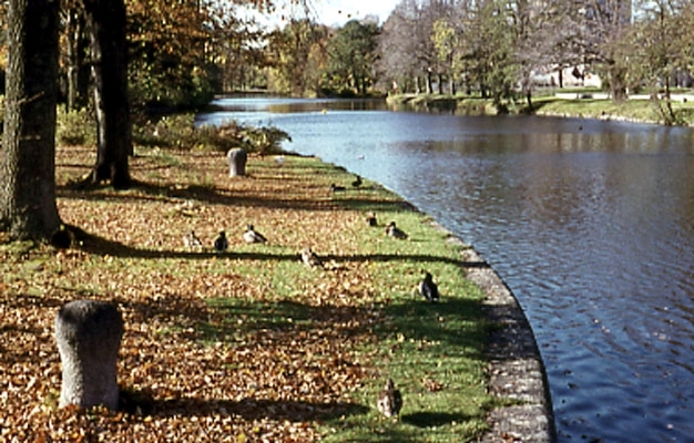 Höstbild av svartån vid Slussen