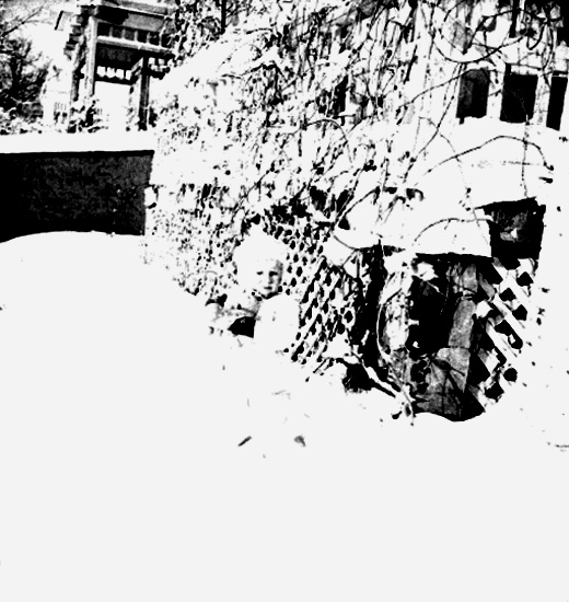 En pojke, barnlek. Vinterbild.