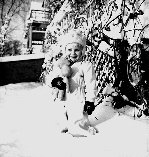 En pojke, barnlek. Vinterbild.