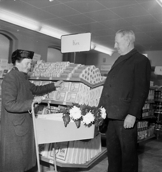 Konsum, affärsinteriör, två personer.
