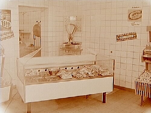 Konsum, affärsinteriör, köttdisk med kåpa.
