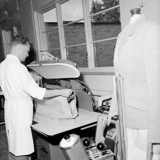 Titel: Bergeå Kemiska, kemtvätt, interiör, en man.
