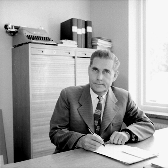 Titel: Bergeå Kemiska, kemtvätt, kontorsinteriör, en man.
