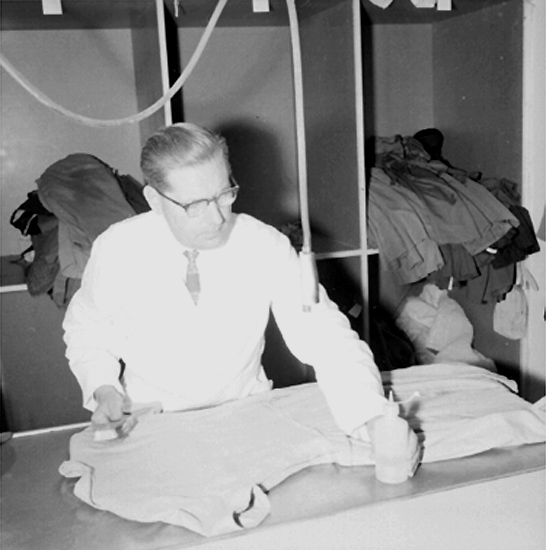 Bergeå Kemiska, kemtvätt, interiör, en man.