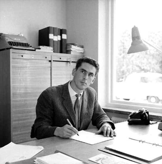 Titel: Bergeå Kemiska, kemtvätt, kontorsinteriör, en man.