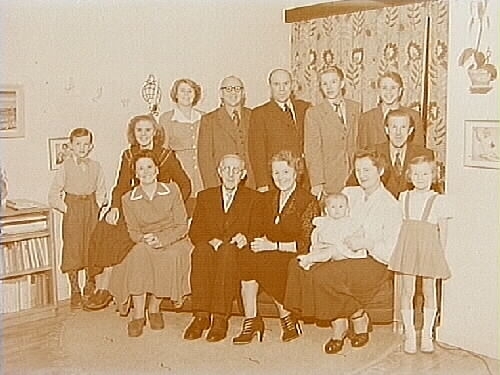 Släktfoto, gruppbild, 14 personer.