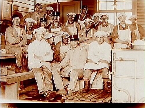 Kungliga Svea Trängkår, diskinrättning, 16 soldater och en korpral vid disken.