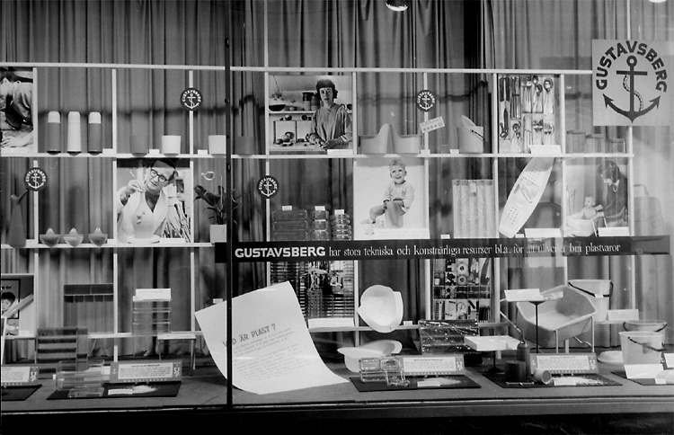 Affärsexteriör, skyltfönster med Gustavsbergsvaror.
