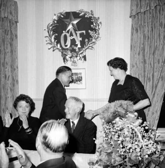 Titel: Rumsinteriör, grupp. Olle Carlbergs 50-årsfest i Arbetarföreningens lokal (ÖAF) på Slottsgatan.