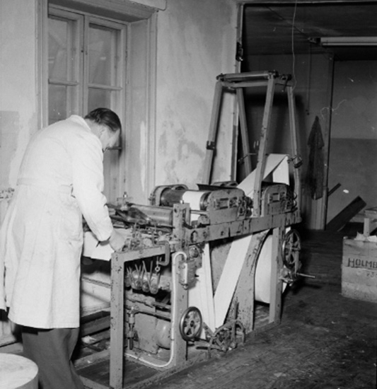 AB Aug. Holmberg, verkstadsinteriör, en man.