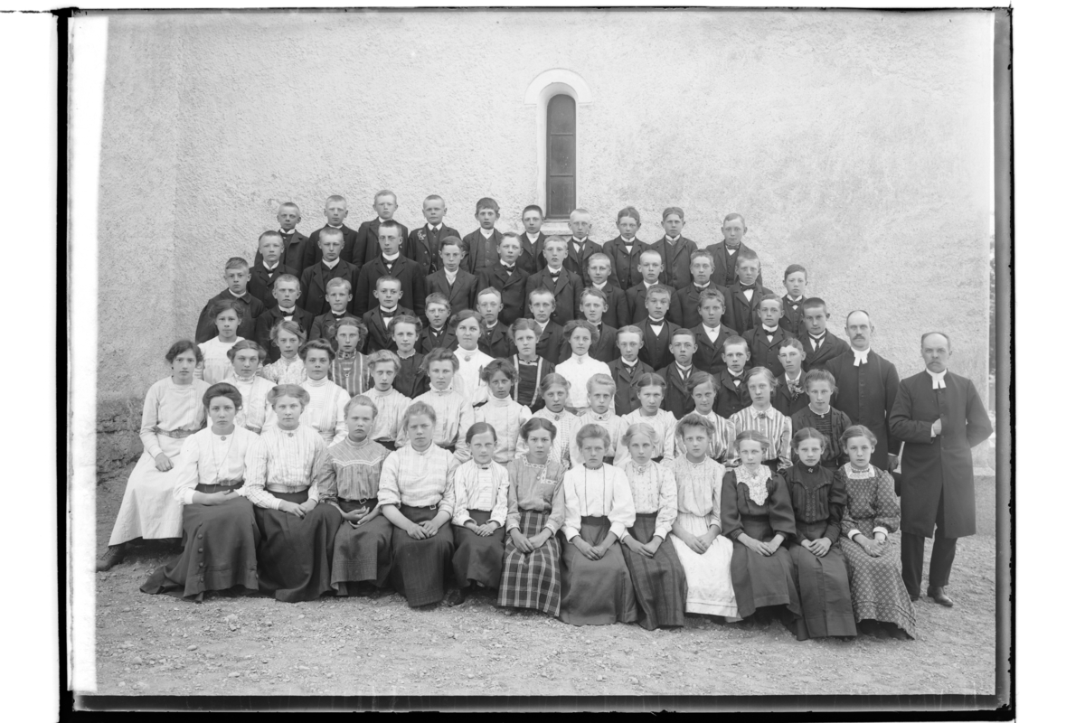 Konfirmander, läsbarn och en präst.