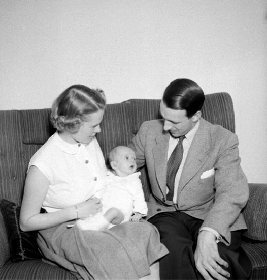 Titel: Rumsinteriör, familjegrupp tre personer. Bigge Holmberg