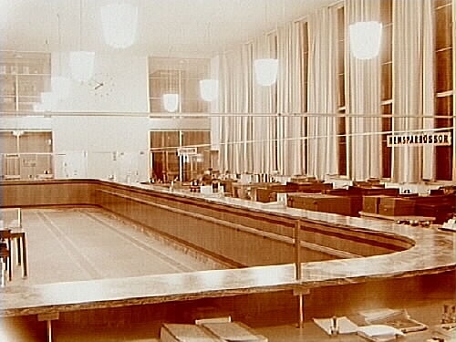 Titel: Sparbanken, interiör. Siemens elfirma.