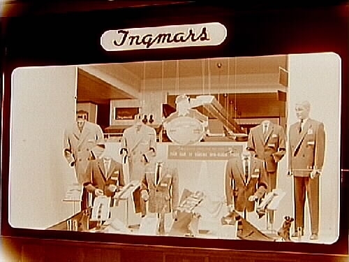 Skyltfönster med SAS inslag. Ingmars herr och gossekipering.