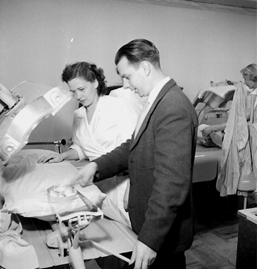 Titel: Konsums herrtvätt, interiör, två kvinnor och en man.