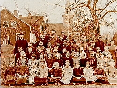56 skolbarn och folkskollärare Vitalis Jansson.