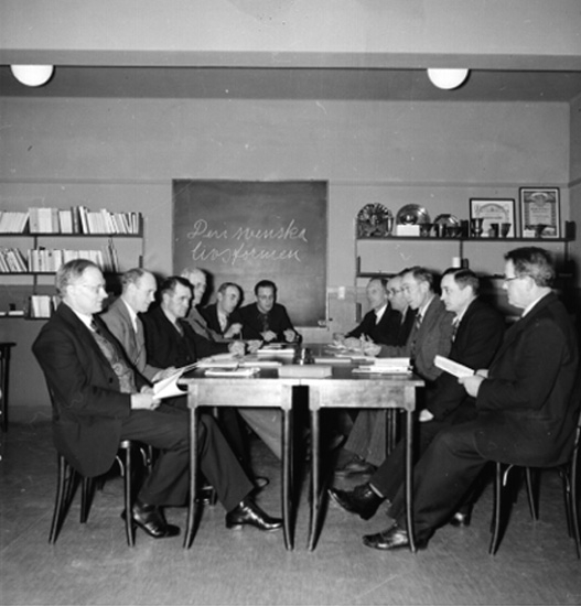 Konsums kurs " Den svenska livsformen", interiör, 11 män.