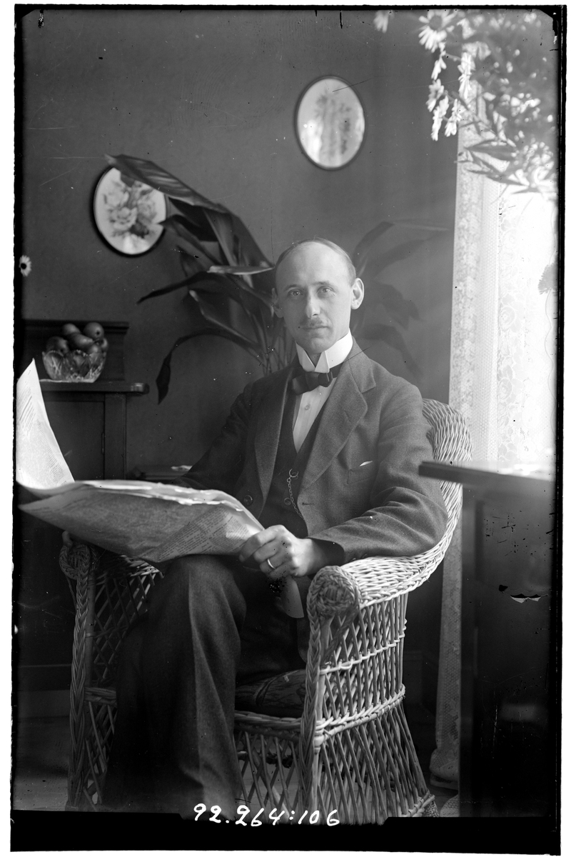 Hålahult sanatorium, interiör, en man sitter och läser tidningen i en korgstol