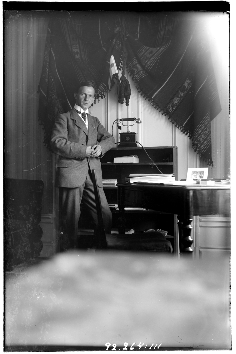 Hålahult sanatorium, interiör, man i kostym vid skrivbord
