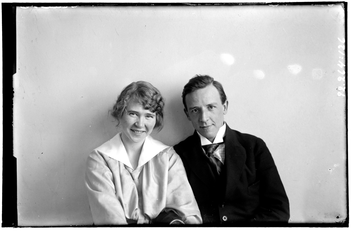 Hålahult sanatorium, interiör, porträtt på man och kvinna, manen underläkare V.H. Steffen 1/1 1920 - 15/8 1922